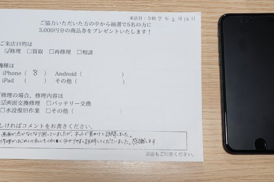 【ガラス+液晶交換】修理が初めてでも安心して預けられました!