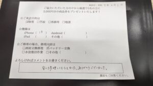 【バッテリー交換】安くて修理も早かったです