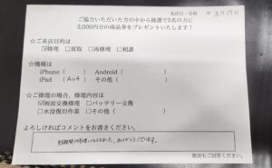 【バッテリー交換】他ではできない修理も引き受けて頂きました