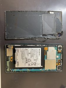 背面パネルがバキバキに!【Xperia Z5】背面パネルの交換も可能です!【恩納村からお越しのお客様より】バッテリー交換と背面パネル交換同時修理のご依頼をいただきました!!