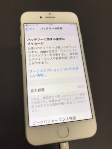 最大容量50%まで減少した【iPhone7】バッテリー交換修理!iPhoneバッテリー交換もデータそのまま安心修理!
