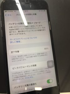 バッテリー最大容量66%まで減少したiPhoneSE(第2世代)バッテリー交換修理!即日で修理可能です!
