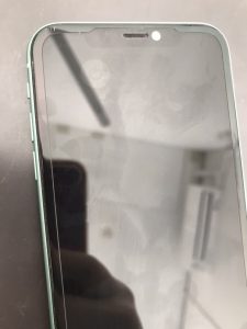 このシミは液晶部分とタッチパネルの間に水が入り込んでしまい出来たものになりますがこれが原因でうまく液晶表示が出来なくなってしまったるのでした。