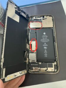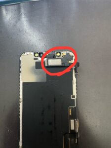 画面が取り外せましたら、近接センサーなどが付いているケーブルを傷つけないよう慎重に取り外し、新しい画面に移植していきます。