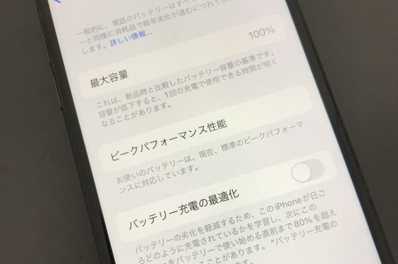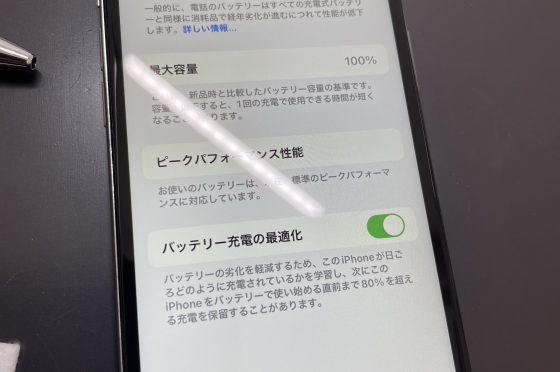 バッテリー最大容量76%の【iPhone8】バッテリー交換修理で100%に!