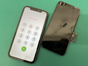 本日はiPhone11のガラス割れ&液晶漏れの修理を承りました!