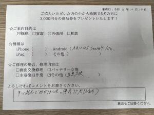 スマホスピタル 大森 【お客様の声】川崎市からお越しのお客様 iPadAirの充電口(ドックコネクター)交換修理を承りました!