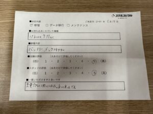スマホスピタル 大森 【お客様の声】iPhone7Plusのバッテリー、充電口交換修理を承りました。