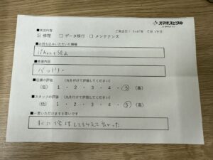 スマホスピタル 大森 【お客様の声】iPhoneSE2のバッテリー交換修理を承りました。