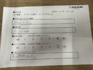 スマホスピタル 大森 【お客様の声】iPhoneXsMAXのバッテリー交換修理を承りました。
