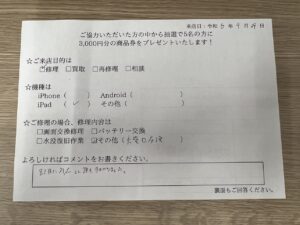 スマホスピタル 大森 【お客様の声】大田区よりお越しお客様 iPad 6ドックコネクター修理を承りました!