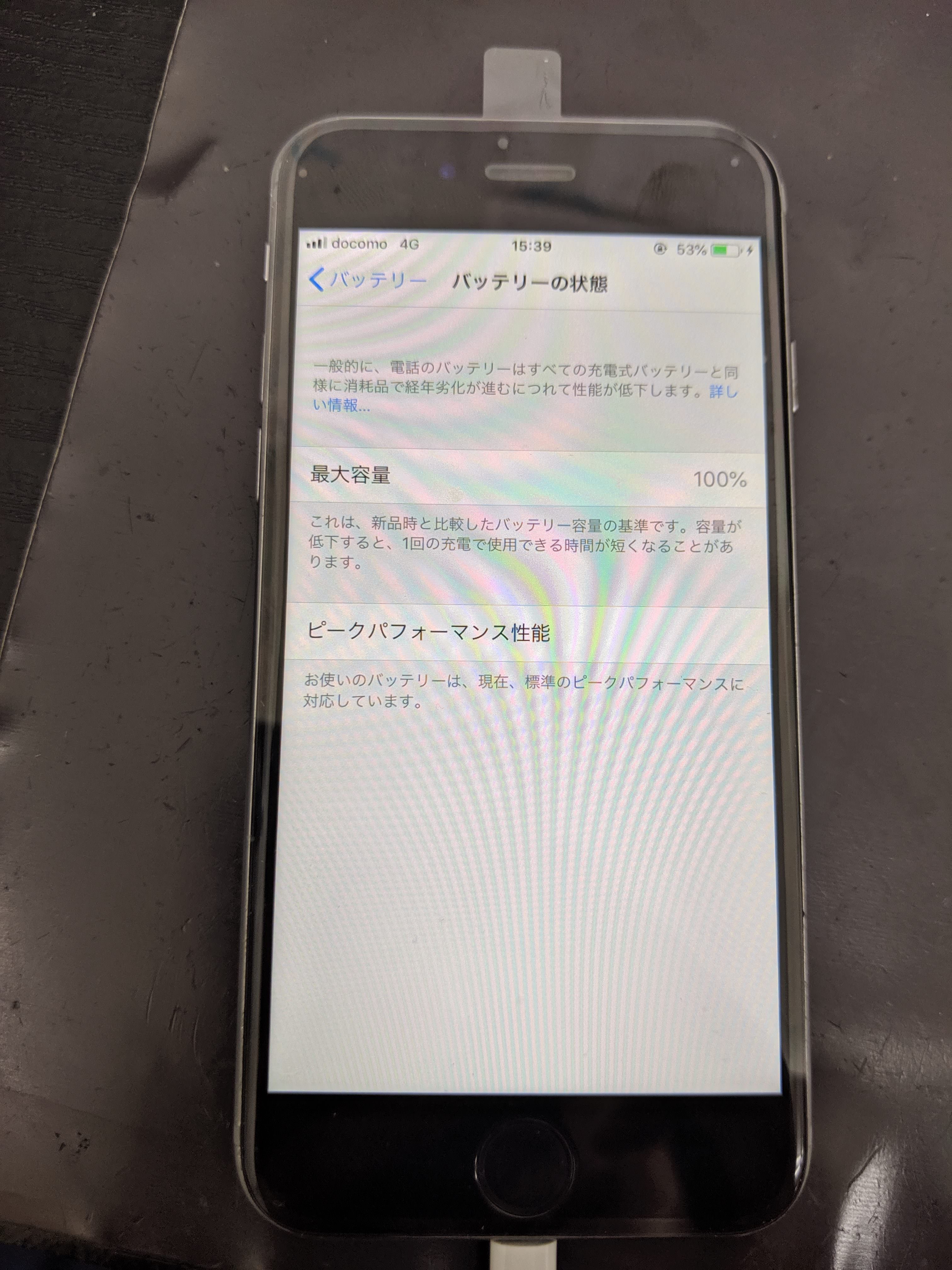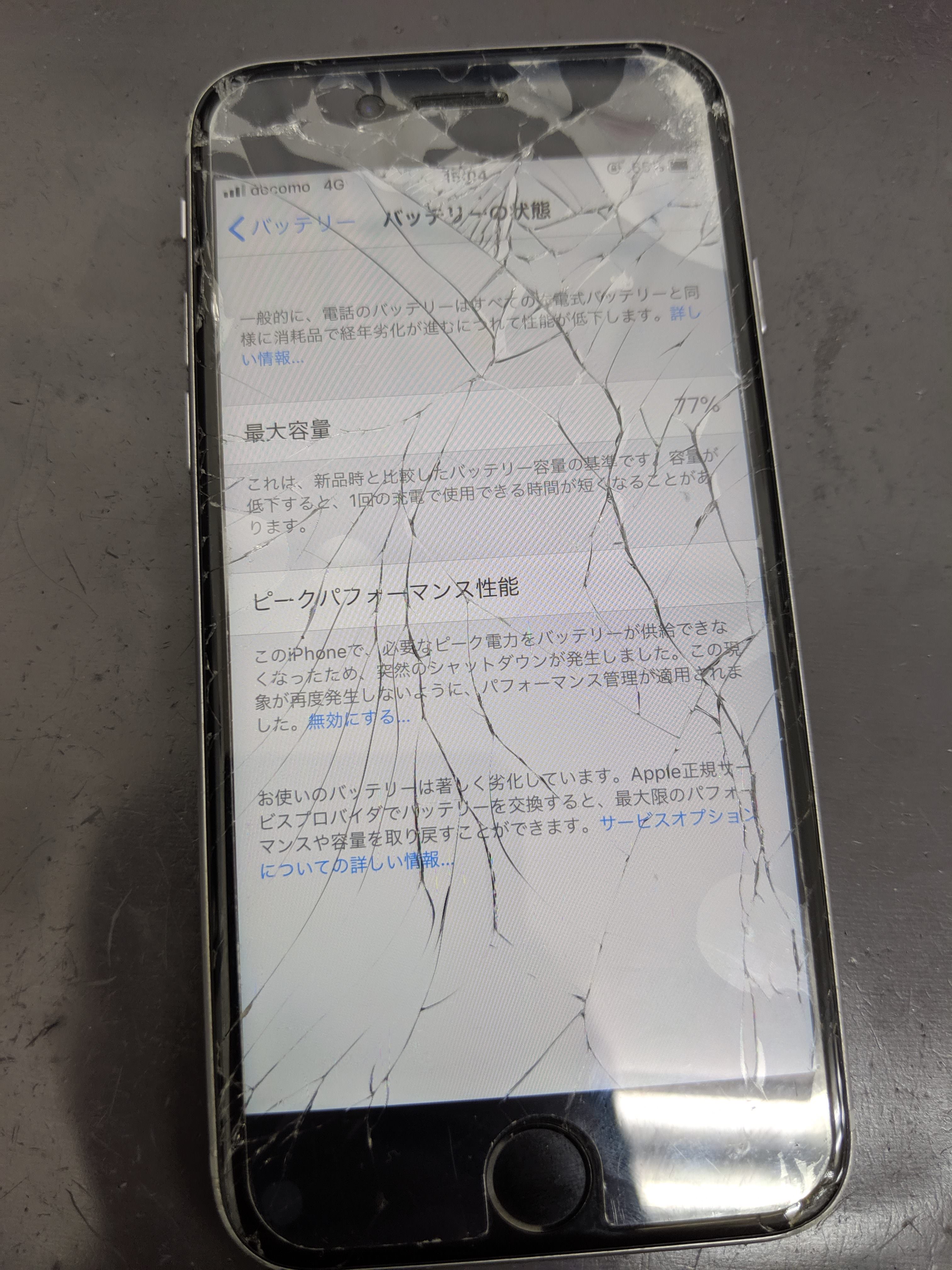 そしてバッテリーの最大容量はなんと77%!劣化が進んでいるようでした。