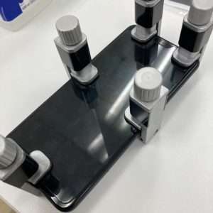 組み上げ時に背面新しい粘着を付けて端末を固定しております。