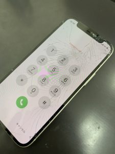 本日、誤って落とされた際、画面がバキバキに割れてしまったので修理されたいというお客様がご来店。