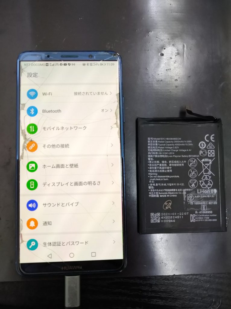 Huawei Mate10 Pro バッテリー交換修理後