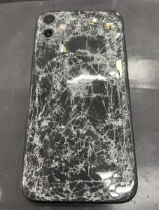 iPhone 11 は背面がガラスタイプなので、画面と同じように割れてしまっています。