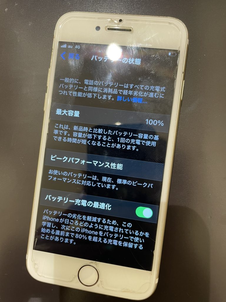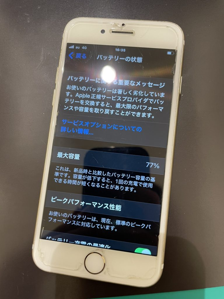 今回お客様がお持ち込みになった端末のバッテリー最大容量は77%でした