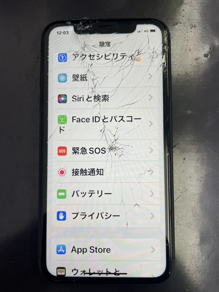 【iPhone 11】割れた画面のまま使用していると危険!怪我にもつながります!