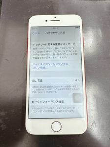 今回お客様がお持ち込みになった端末の最大容量が64%でした。