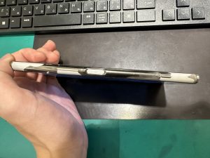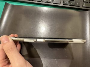バッテリー膨張による背面パネルが圧迫されて、完全に浮いてしまっています。