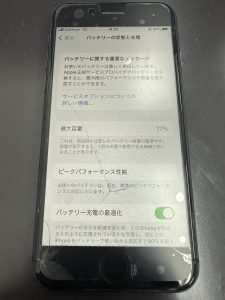 また、バッテリーの最大容量に関しては77%と低くなっているので、