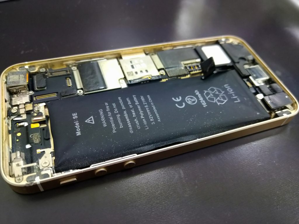 バッテリーを取り外しバッテリーを交換させて頂いたあとのiPhone SEです。