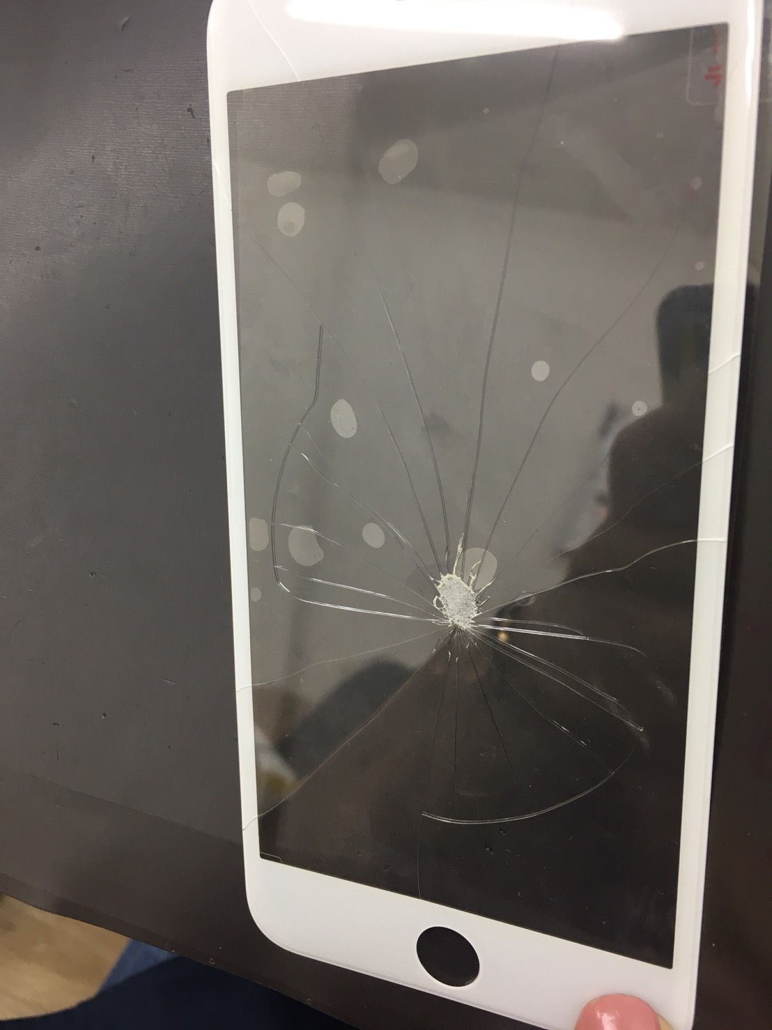この状態で持ってこられたのですが、ガラスフィルムを剥がすと画面は無傷でした!!