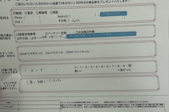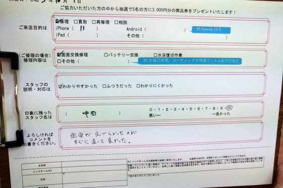 弊社の修理サービスをご利用いただいきましたお客様の声です。