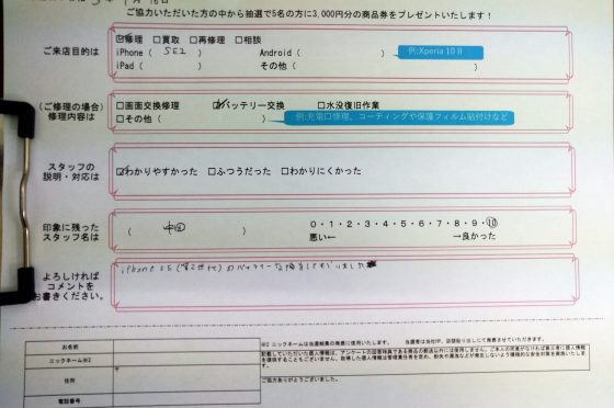 【お客様の声】iPhone SE(第2世代)のバッテリー交換修理のご依頼を頂きました!