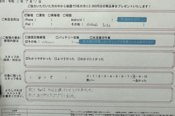 【お客様の声】Nintendo Switch 本体レールと内部クリーニングをさせて頂きました!