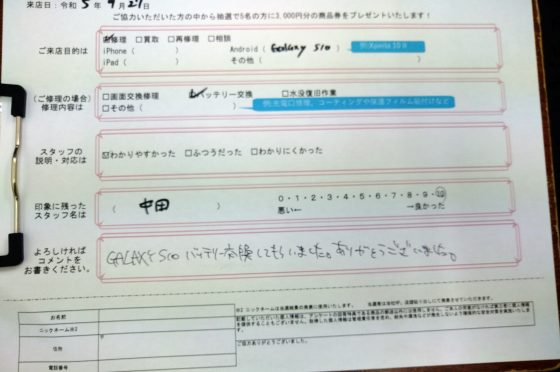 【お客様の声】Galaxy S10のバッテリー交換修理をさせて頂きました!