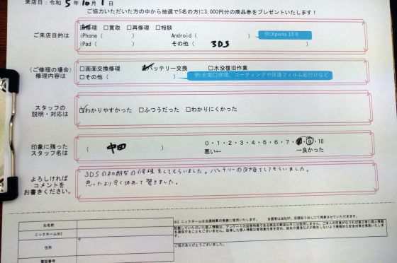【お客様の声】Nintendo 3DSのバッテリー交換修理をさせて頂きました!