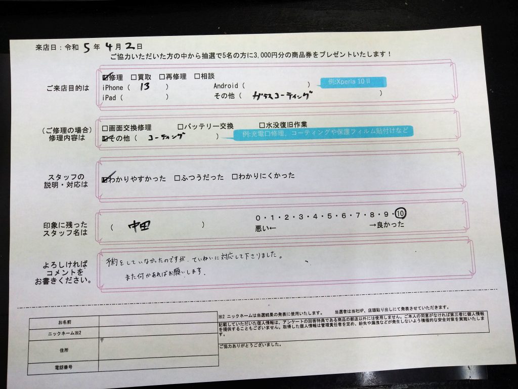 スマホスピタル大阪駅前第4ビル 【お客様の声】iPhone 13のガラスコーティングをさせて頂きました!