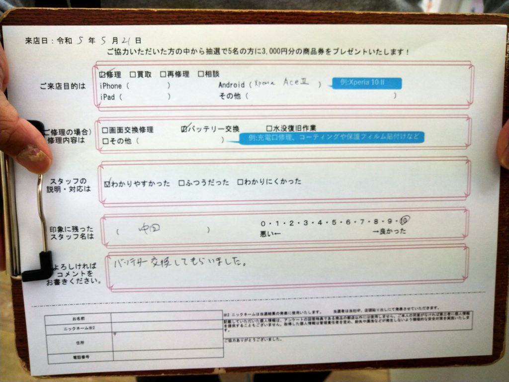 【お客様の声】Xperia AceⅡのバッテリー交換修理のご依頼を頂きましたっ!