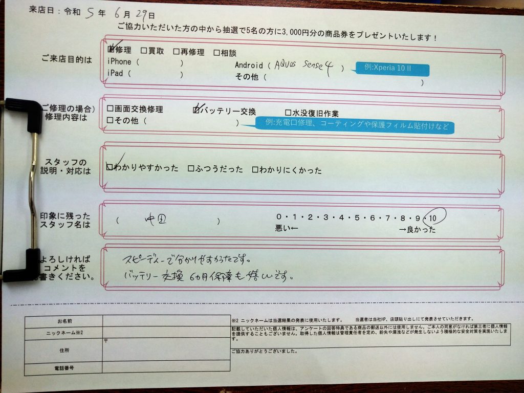 スマホスピタル大阪駅前第4ビル 【お客様の声】AQUOS Sense 4のバッテリー交換修理をさせていただきましたっ!