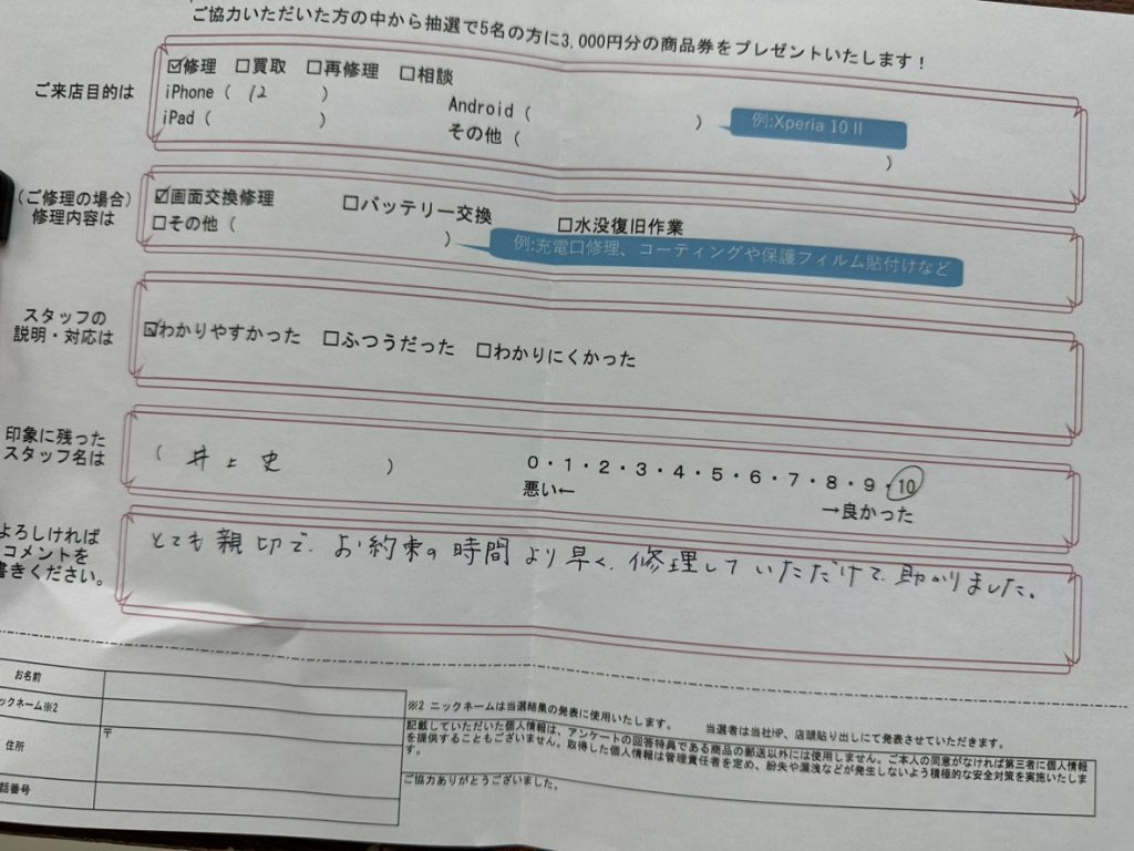 とても親切で、お約束の時間より早く、 修理していただけて助かりました。 (コメントより抜粋)