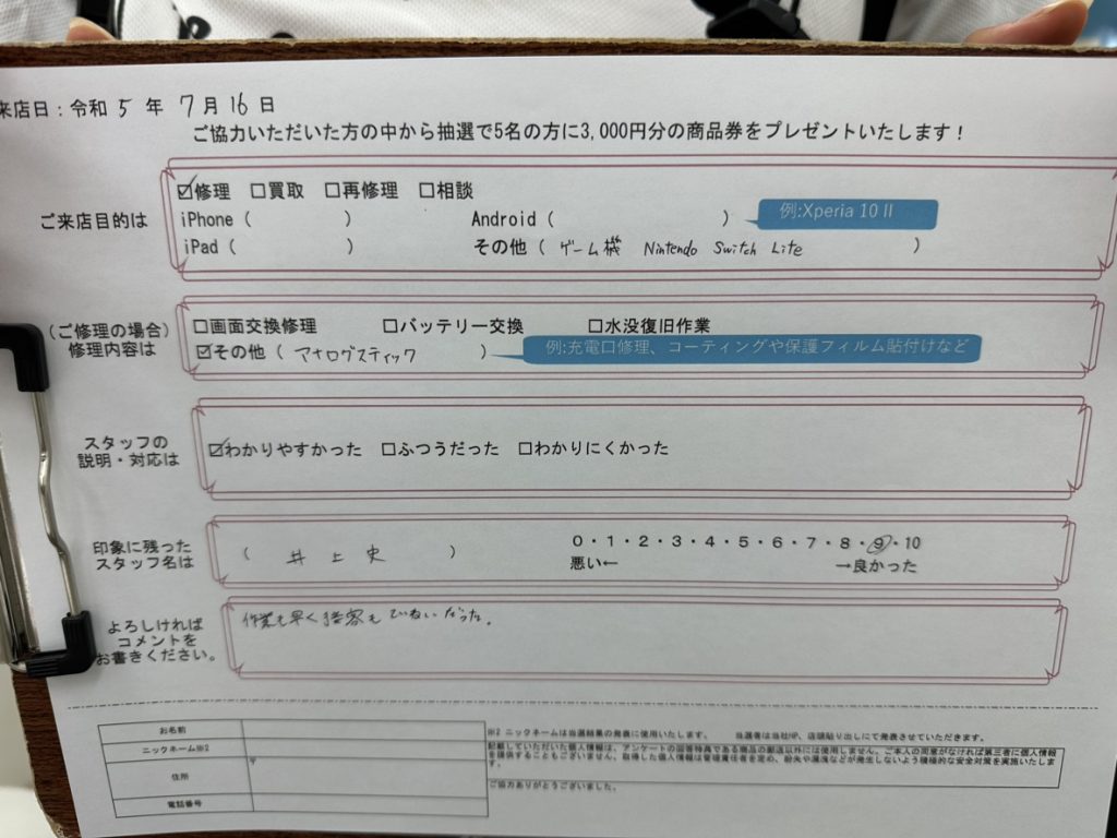 【お客様の声】Nintendo Switch liteのアナログスティックの交換修理のご依頼を頂きました!