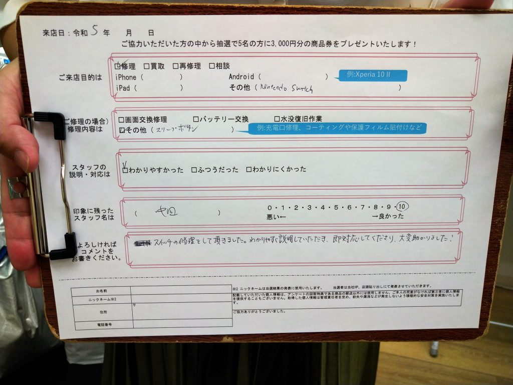 スマホスピタル大阪駅前第4ビル 【お客様の声】Nintendo Switchの修理をさせて頂きました!