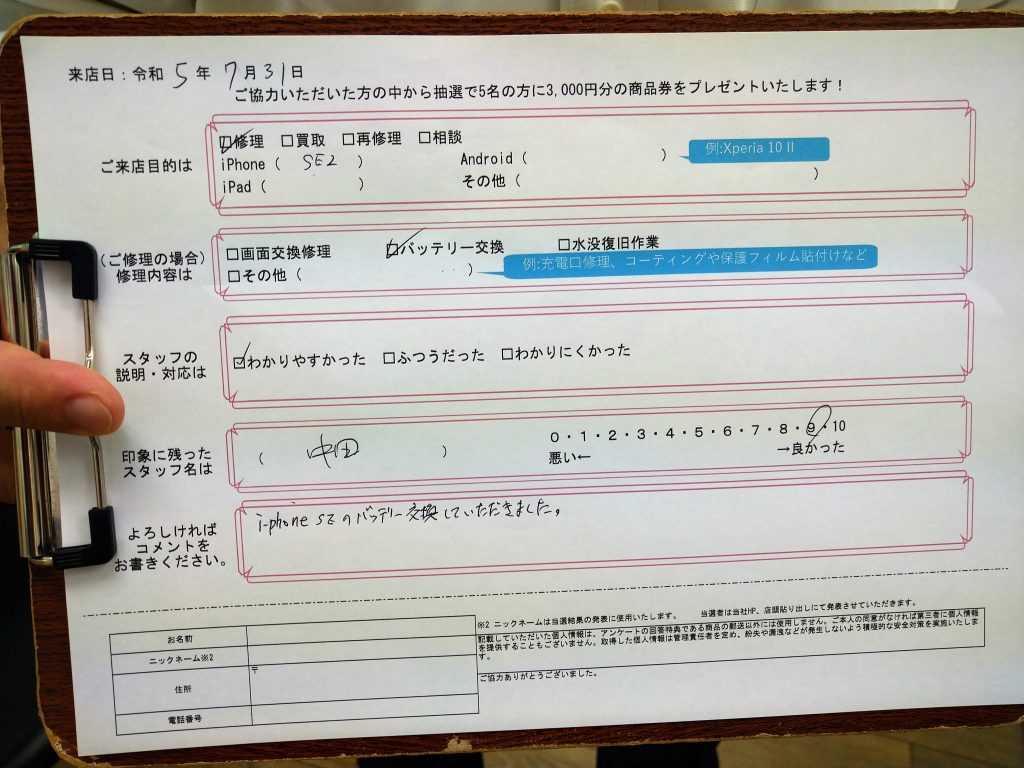 iPhone SEのバッテリー交換していただきました。 (コメントより抜粋)