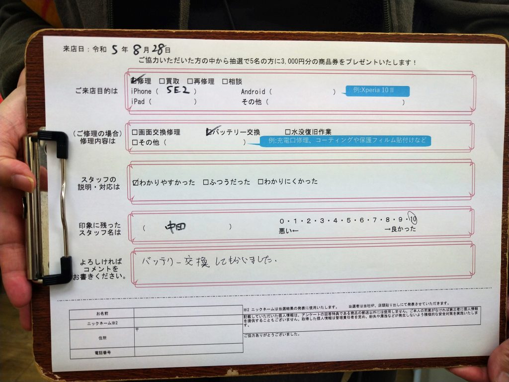 【お客様の声】iPhone SE(第2世代)のバッテリー交換のご依頼を頂きましたっ!