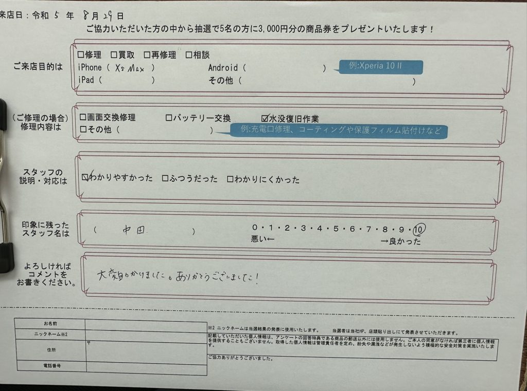 【お客様の声】iPhone Xs Max の水没復旧作業をさせて頂きました!