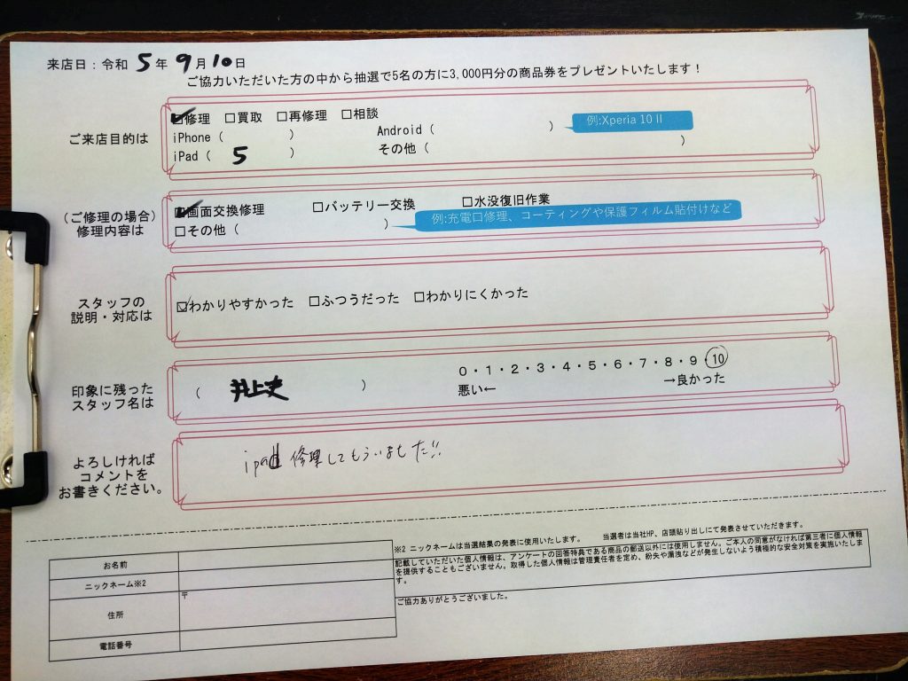 iPad修理してもらいました!! (コメントより抜粋)
