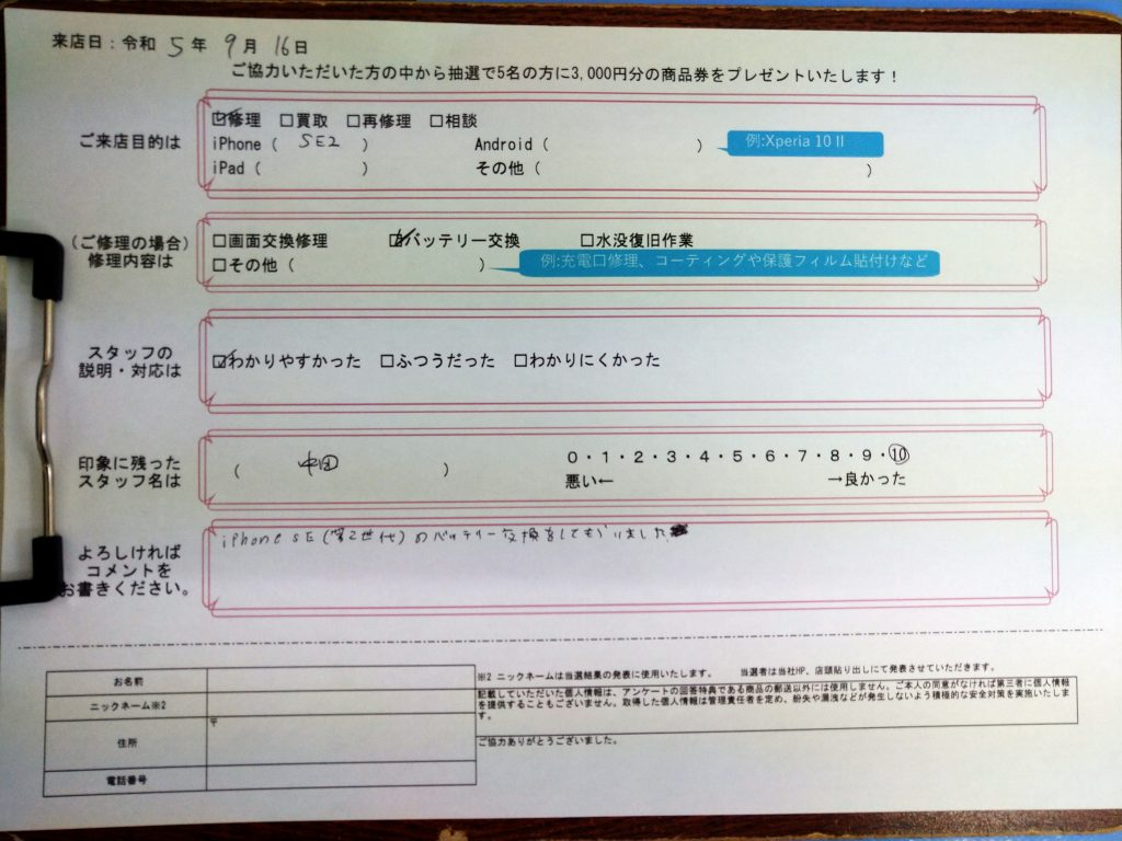 iPhone SE(第2世代)のバッテリー交換をしてもらいました。 (コメントより抜粋)