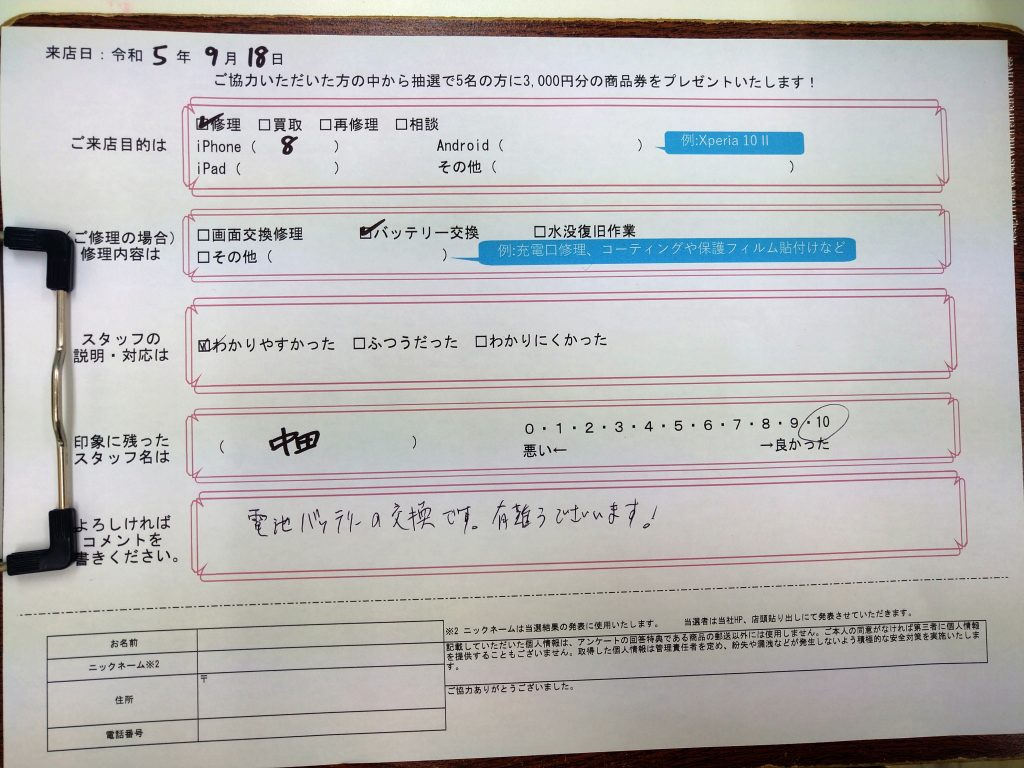 【お客様の声】iPhone 8のバッテリー交換修理を承りました!