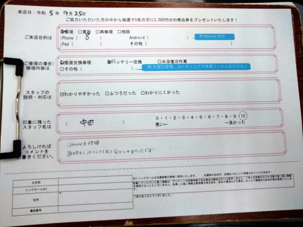 iPhone8修理 説明もしっかりしてくれて分かりやすかったです! (コメントより抜粋)