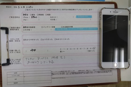 【お客様の声】iPhone 8Plusの画面交換修理をさせて頂きました!