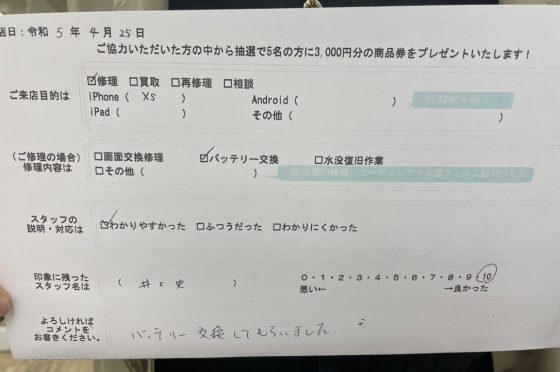 【お客様の声】iPhone Xsのバッテリー交換をさせていただきました!