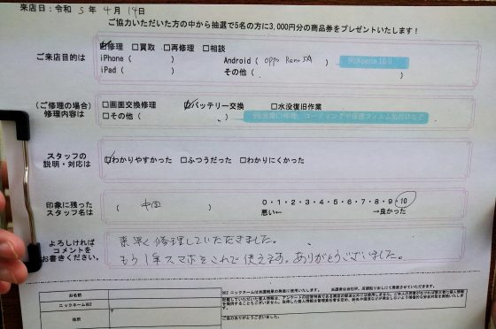【お客様の声】Oppo Reno 5Aのバッテリー交換修理をさせて頂きました!