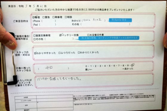【お客様の声】Xperia AceⅡのバッテリー交換修理のご依頼を頂きましたっ!