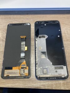 交換後、画面チェックをして、専用接着剤でしっかり固定します。